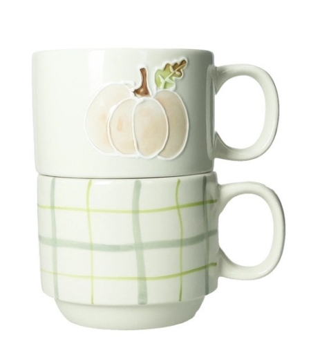 Realizzate in resistente stoneware, queste tazze impilabili sono pensate per offrire il massimo della funzionalità senza rinunciare allo stile. Una tazza presenta una dolce decorazione a quadri in delicate tonalità verdi e bianche, evocando la tranquillità delle giornate autunnali. L’altra tazza è impreziosita da una tenera zucca stilizzata in rilievo, con sfumature pastello che aggiungono un tocco di calore. La possibilità di impilarle le rende ideali per piccoli spazi, mantenendo comunque un’estetica curata.