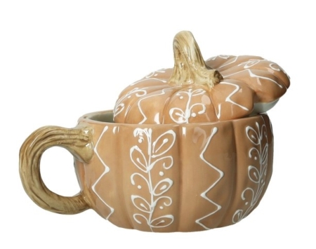 Realizzata in pregiata dolomite, questa tazza sfoggia una splendida tonalità arancio caldo che ricorda le foglie autunnali e le zucche più dolci. Le delicate decorazioni in rilievo, con motivi floreali e geometrici stilizzati in bianco, aggiungono un tocco artigianale e un’eleganza discreta. Il comodo manico, ispirato al gambo di una zucca, e il tappo coordinato non solo completano il design in modo armonioso, ma aiutano anche a mantenere le tue bevande calde più a lungo o a conservare piccoli snack in modo sicuro.