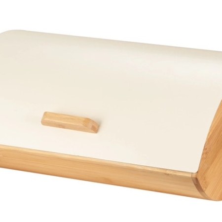 Portapane rettangolare metallo avorio con tagliere bamboo