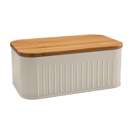 Portapane rettangolare metallo avorio con tagliere bamboo