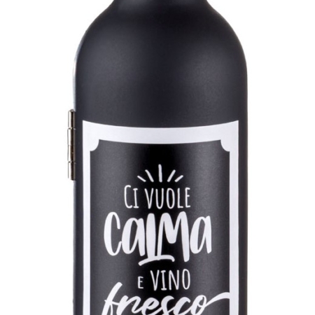 Bottiglia con set accessori vino ” Ci vuole calma e vino fresco”